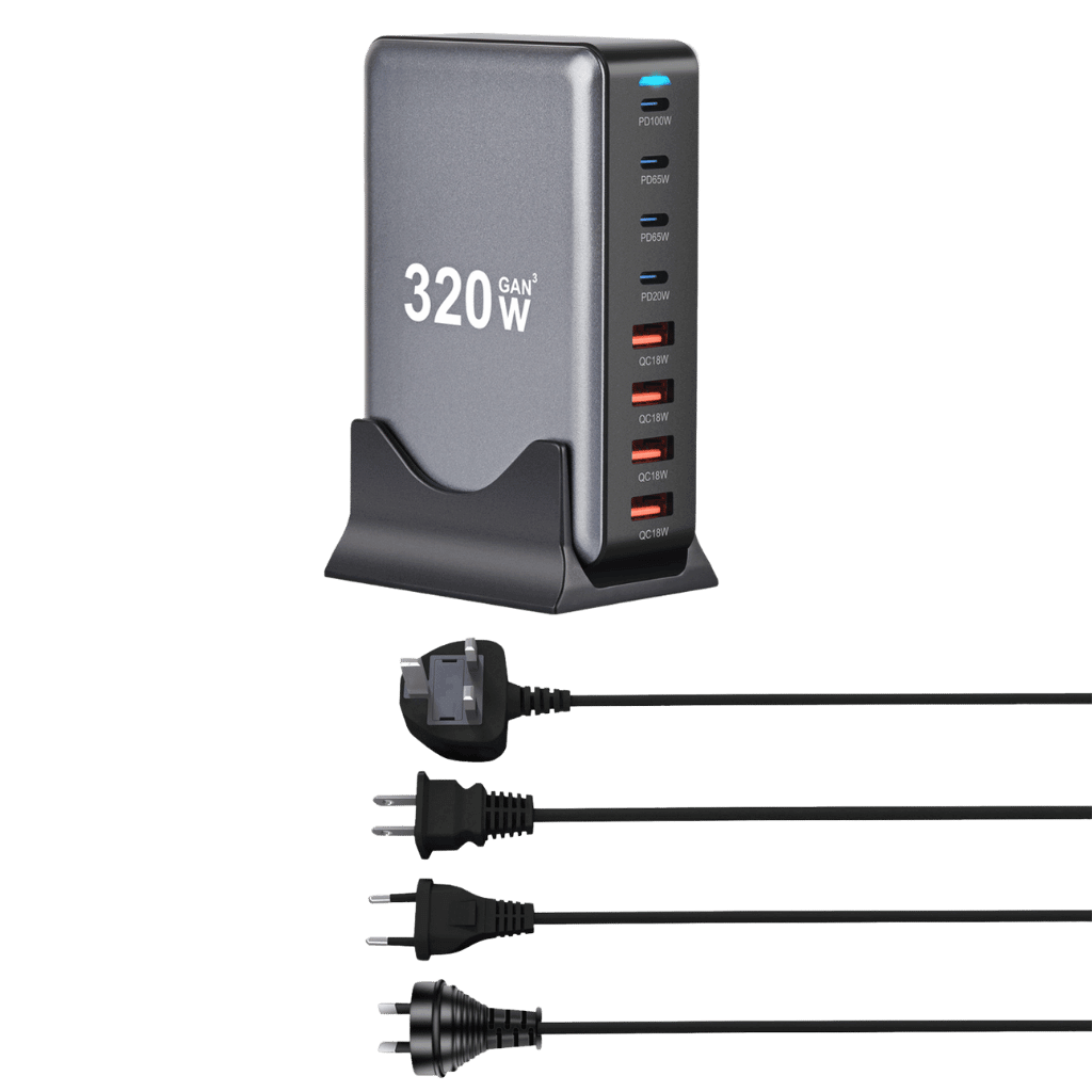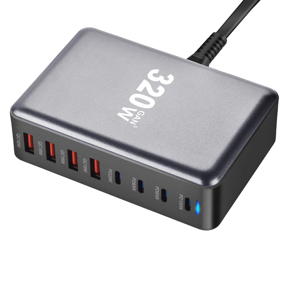 1️⃣ PowerHub 320W GaN 8-Port Charger