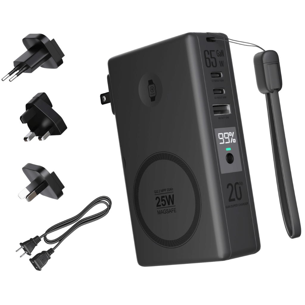 Replaces your wall charger, magnetic charger, power bank, and laptop adapter — all in one compact design.